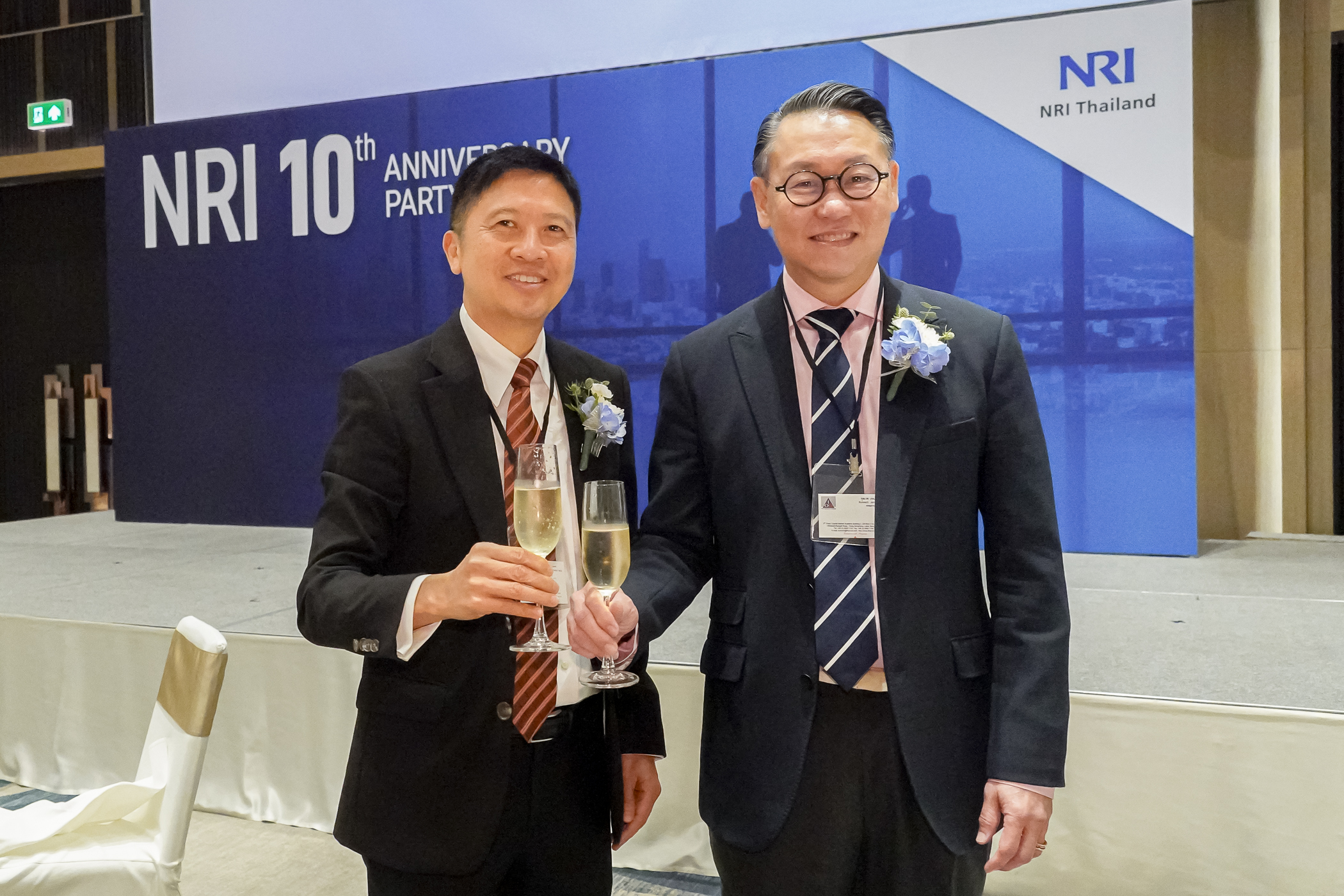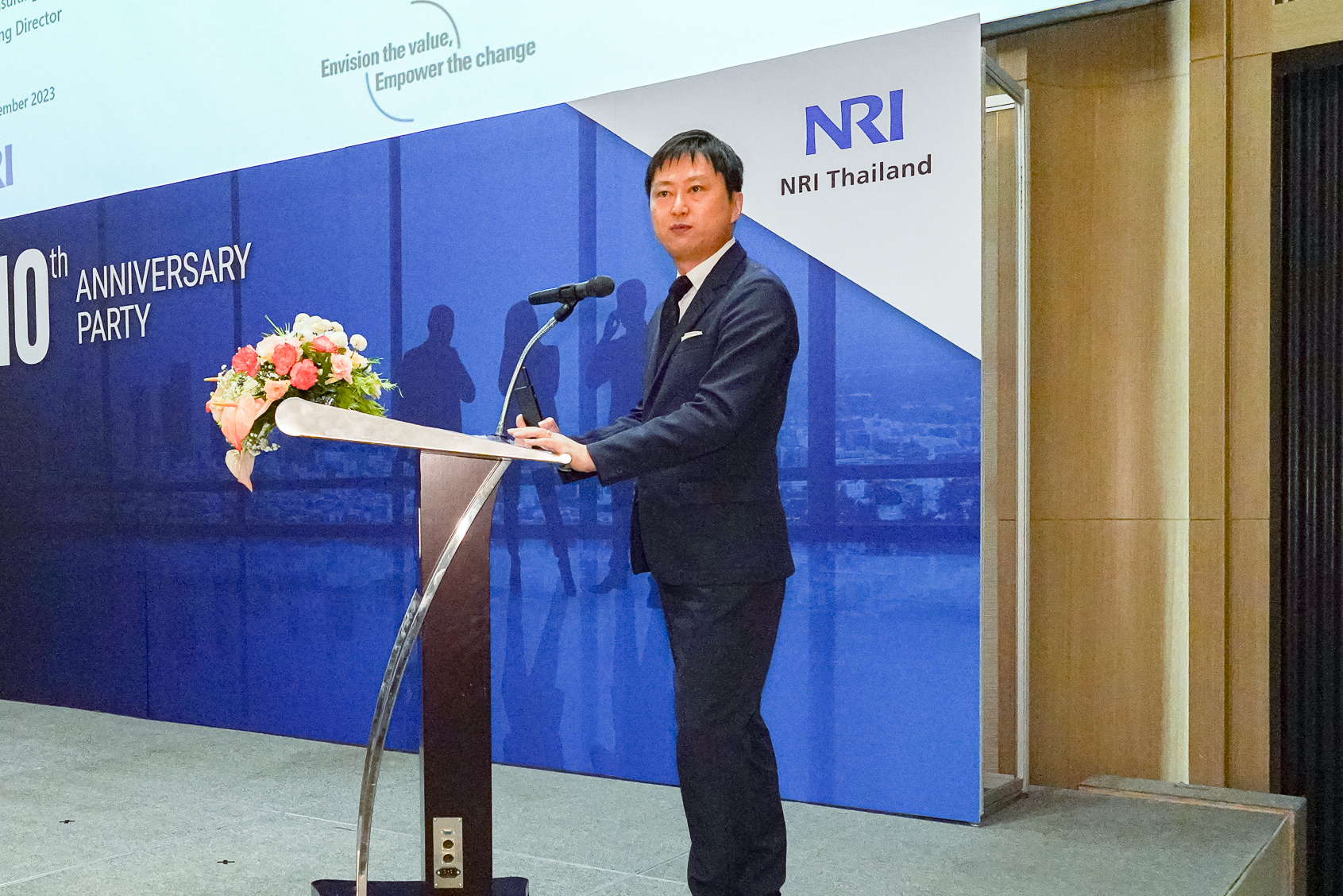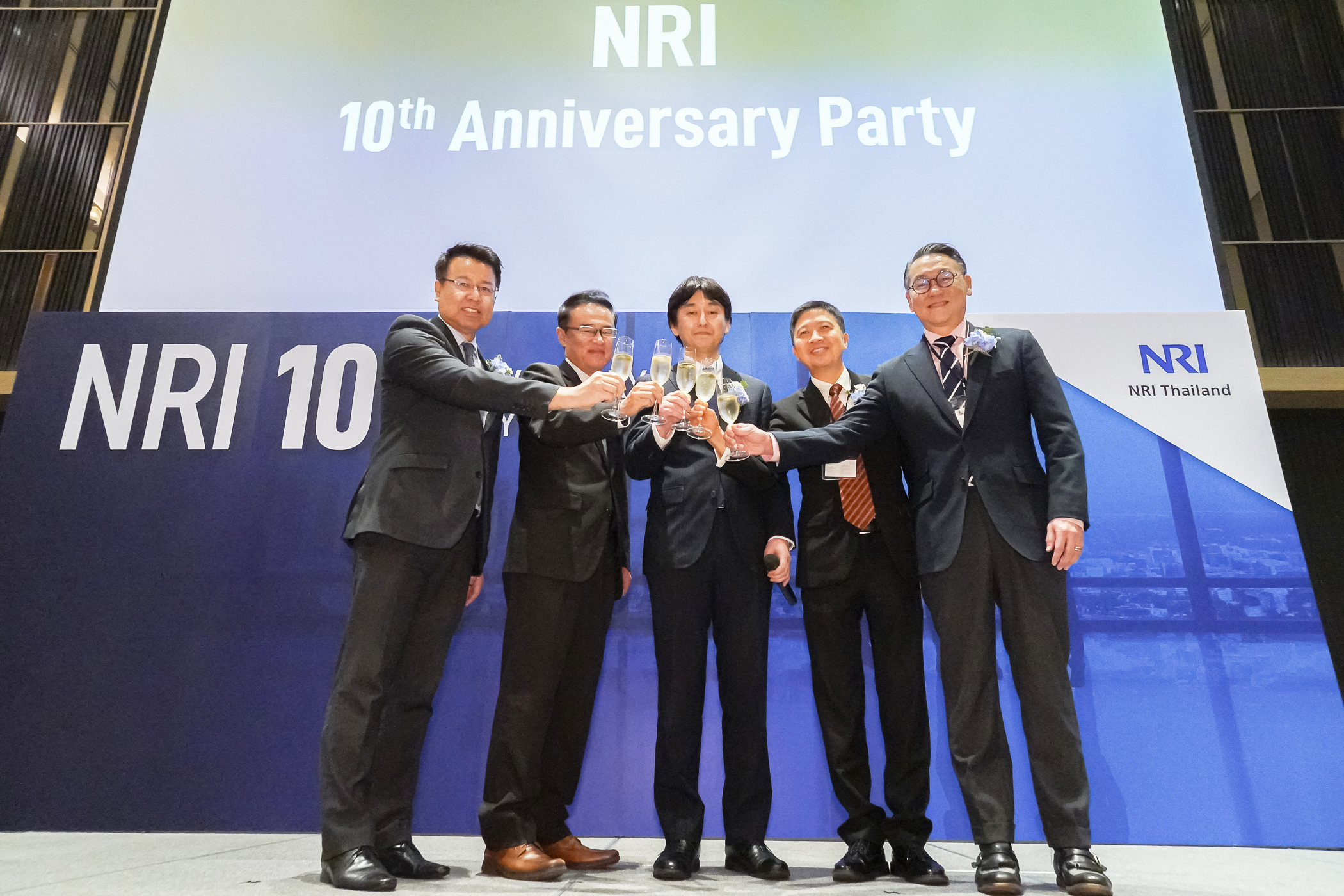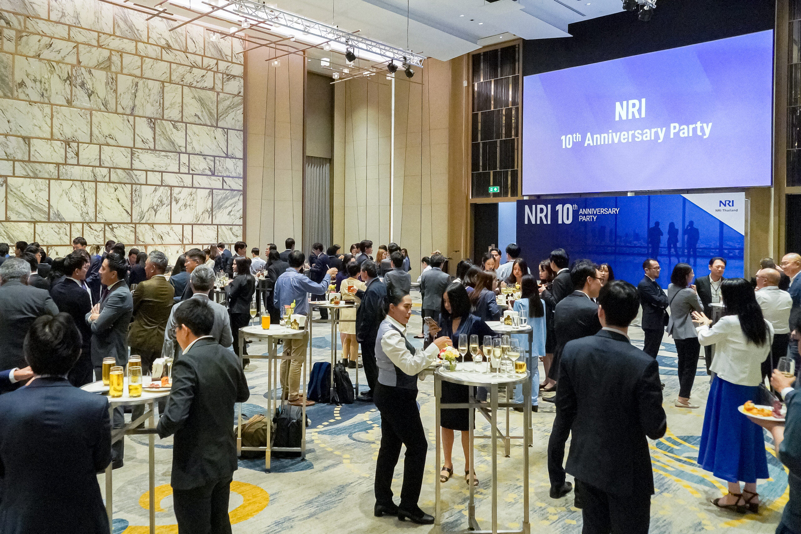 2013年にタイにオフィスを構えてて10周年となった2023年。NRIタイの社員だけでなくタイ政府関係者や日本大使館の関係者を招いてのレセプションパーティーを開催した。各代表者が挨拶をした後、クイズ大会が行われ、NRIに関係のある問題が出題され会場を盛り上げた。Mediatorではステージバックドロップのデザインから運営サポートまで行った。